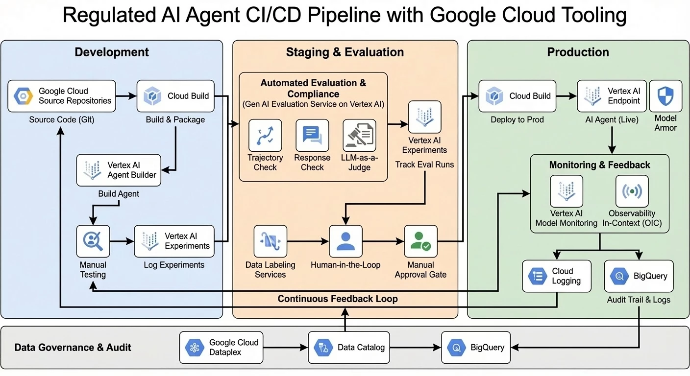 - Leverage Google Cloud's AI Tools: Explore how Vertex AI Agent Builder and the Vertex AI Evaluation Service can help you build, deploy, and evaluate your AI agents in a compliant and scalable manner.