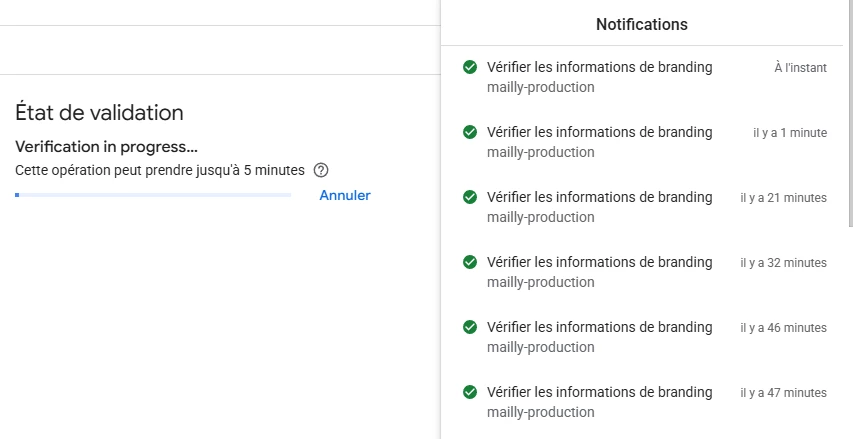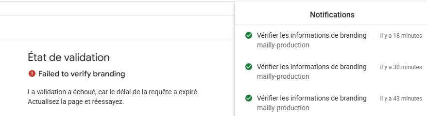 I am facing a blocking issue while trying to verify my OAuth Branding in the Google Cloud Console. I am stuck in an infinite loop where the verification process times out after exactly 15-20 minutes.