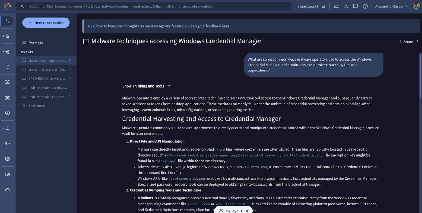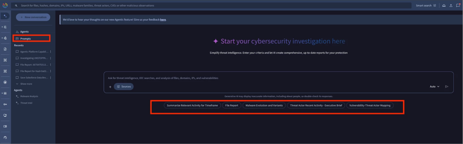 This frees you and your team from the data-gathering grind, allowing you to focus on higher level tasks such as: strategic analysis, proactive defense, and communicating risk to leadership. You can generate executive-level threat briefs, get detailed explanations of malicious files, and even save prompts for recurring tasks to make your analysis consistent and efficient.