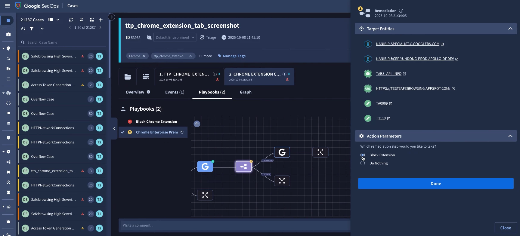The true power of the Google Security Operations and Chrome Enterprise Premium integration is realized through response automation. We have updated the Google Workspace SOAR integration to allow analysts to respond to malicious Chrome extensions directly from a case in SecOps. New response actions are available to update the extension policy to block or unblock an extension across managed browsers and profiles Once an extension has been added to the block list, Chrome will prevent it from running on other managed browsers and profiles.
