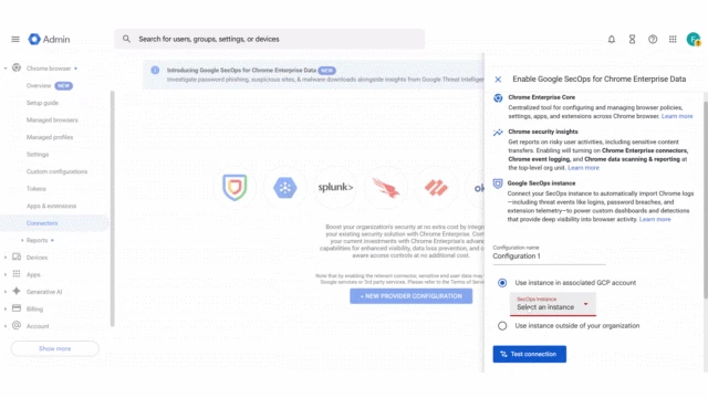 To truly realize this value, we knew we had to remove the barriers between IT and Security. For Chrome admins, we have introduced a new and easier onboarding experience, eliminating the need to manage API keys or complex configuration files. You can now quickly link Chrome Enterprise Premium to Google SecOps directly from the Chrome Admin console , ensuring that critical telemetry is available to your security team.