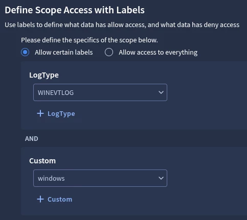 - Under “Define Scope Access with Labels” select “Custom” and select the Custom Label you create in the prior step