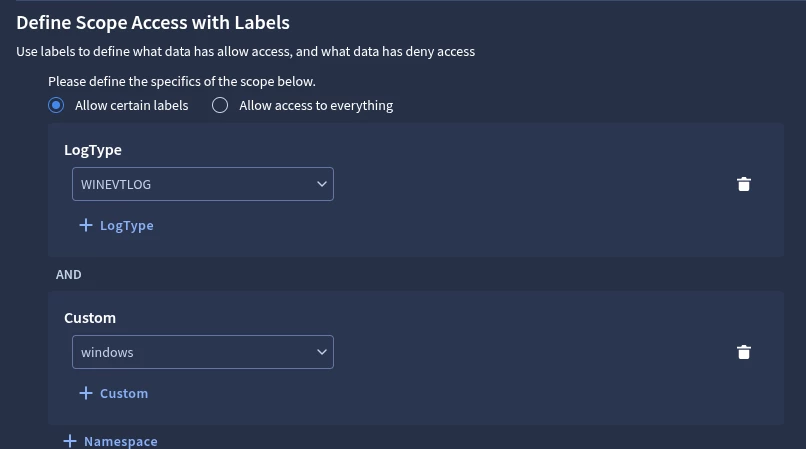 SIEM: Create Data RBAC Scopes, using your Custom Labels