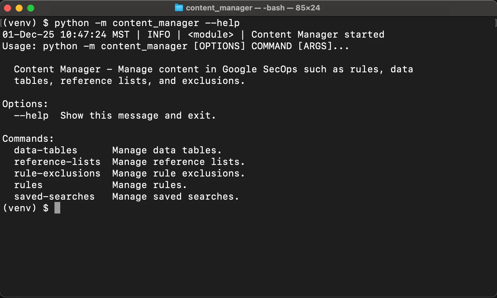 That’s it for this post where we looked at how to manage saved searches via the Google SecOps REST API. Content Manager is a utility that makes it easy for security teams to manage their content such as rules, rule exclusions, data tables, and saved searches in an automated fashion. Please leave a comment below if you’d like to see support added for other content types.