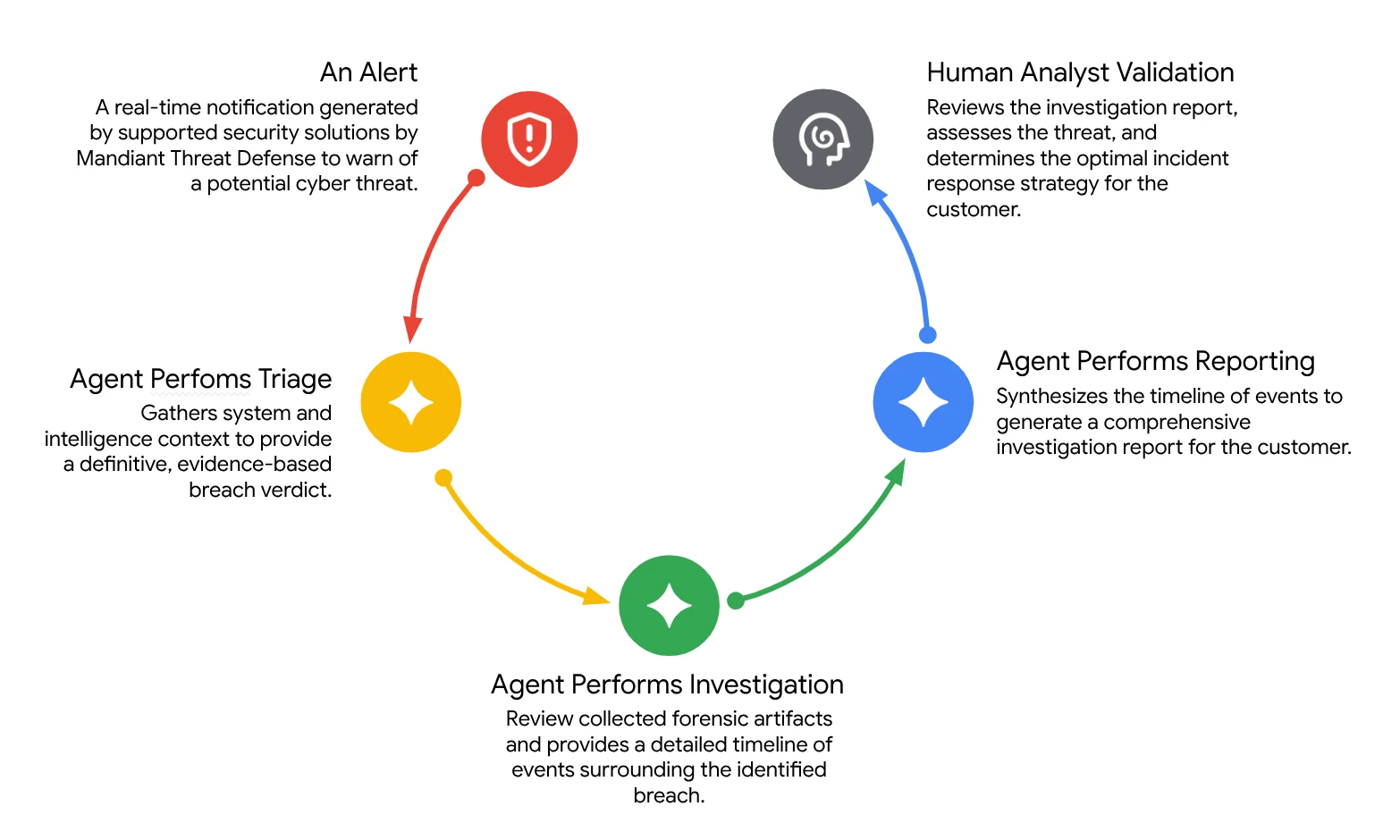 Today the Mandiant Threat Defense service is centered around AI, with almost every workflow tightly integrated into our agentic tooling. However, the human factor remains just as critical, allowing us to accurately assess the impact of a threat (e.g. a novel attack technique or unknown new campaigns) and make decisive incident response decisions for our customers. Behind the scenes, the team continuously pools deep security expertise and capabilities across Mandiant and Google Security Operations to initiate threat hunting, malware analysis, intelligence gathering, and detection engineering. By using this frontline expertise to continuously augment our AI workflows, we create a more robust incident response cycle for our customers, as well as help accelerate the work of our researchers and analysts, and ensure a highly coordinated, best-in-class protection for our entire customer base and the broader community.