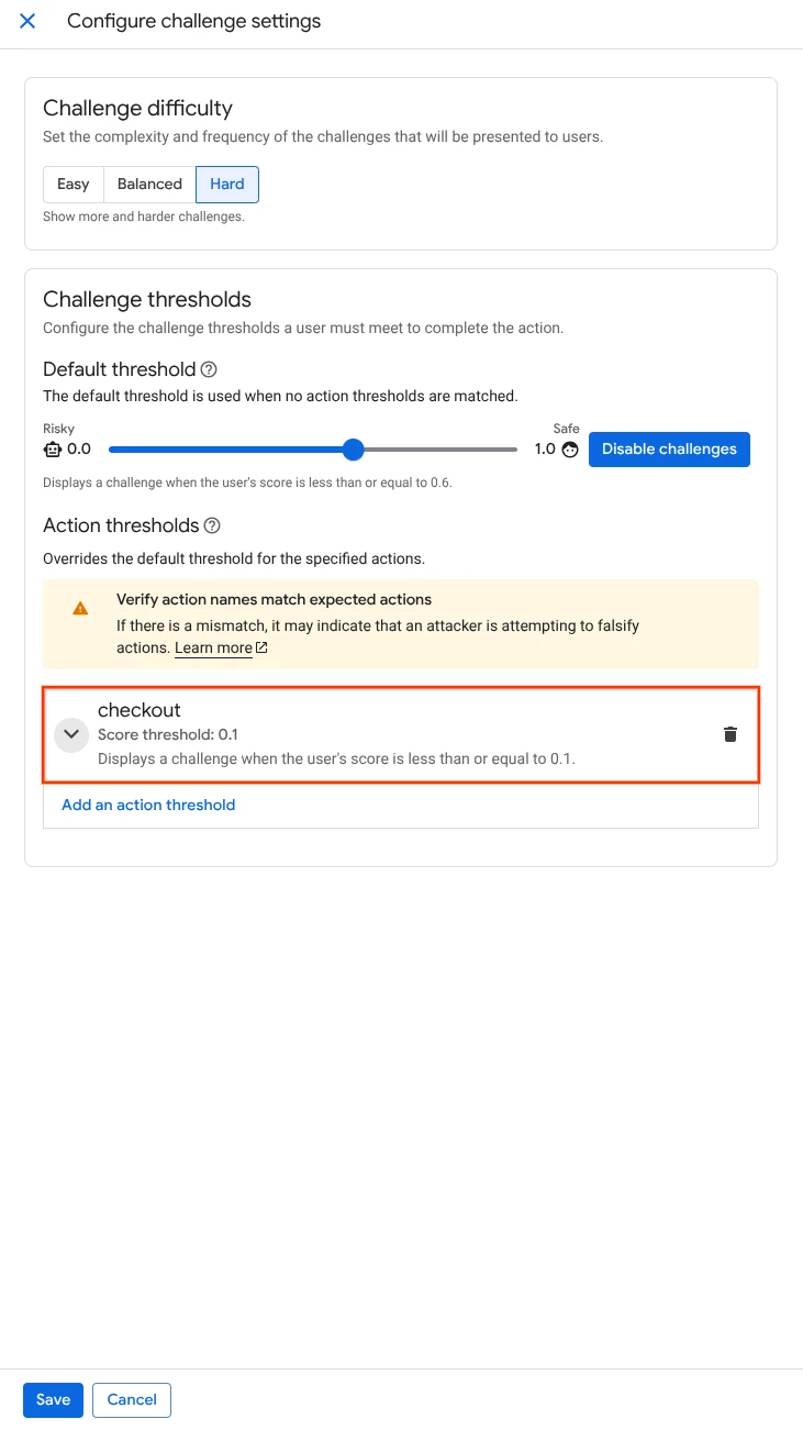 - (Optional) Add Action-Specific Overrides: Use the console or gcloud commands to set different thresholds for specific actions (e.g., login, signup, password_reset). This gives you fine-grained control over your most critical user flows.