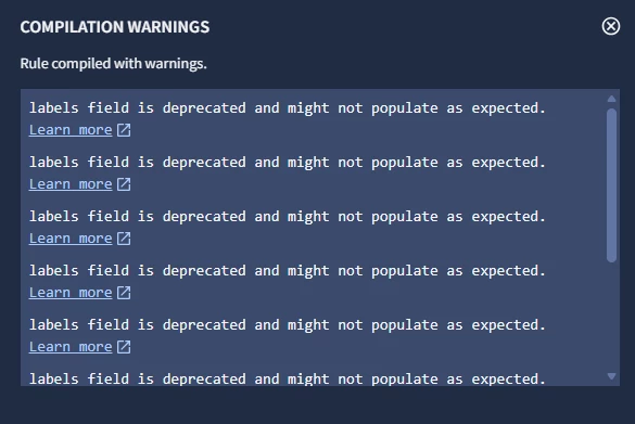 $resource_id = re.capture($e.target.labels["ConsentAction.Permissions"], `ResourceId:\s*([^,]+)`)However when I save this a YARA-L rule, i’m getting the message “labels field is deprecated and might not populate as expected.”