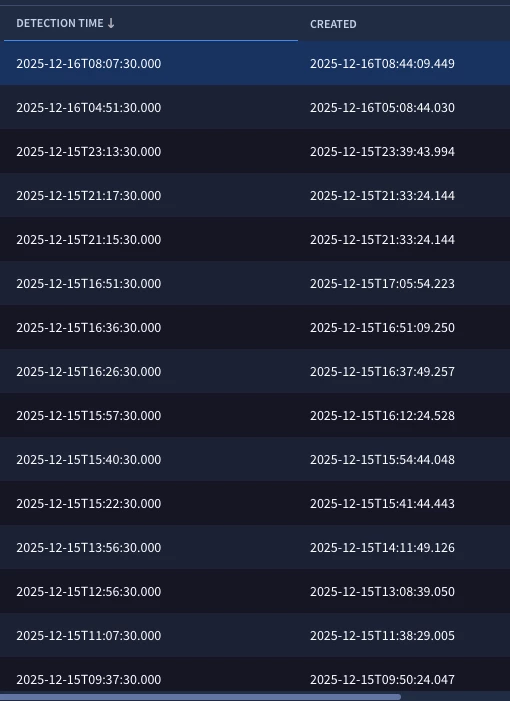 Created Timestamp - When the detection was created by detection engine