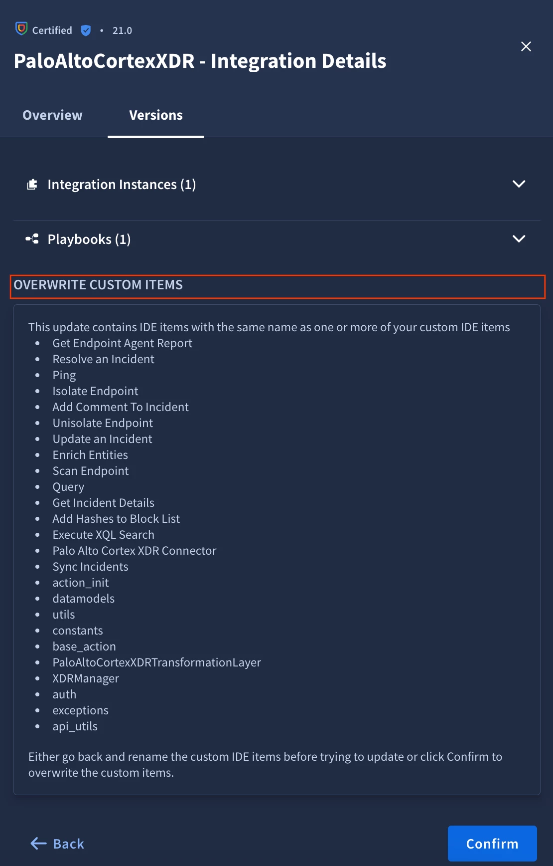 - Rollback is supported only for “certified” Response Integrations.