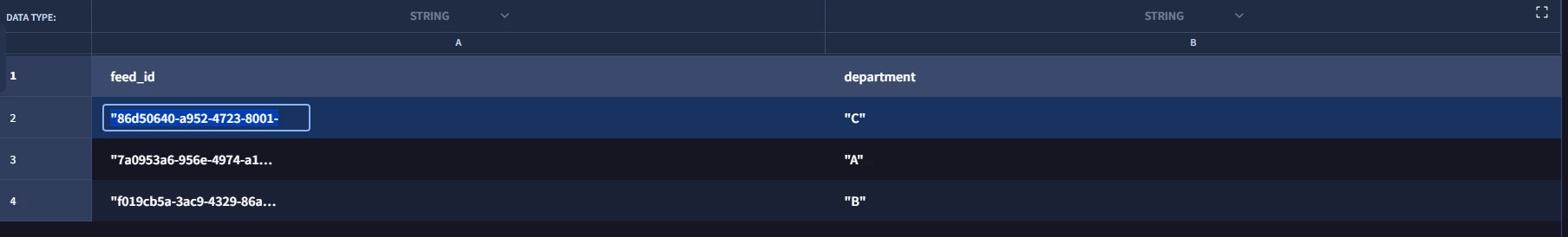 For example, when the feed_id is "86d50640-a952-4723-8001-fbbc22e7c446", I want the Department variable to be set to "C".
