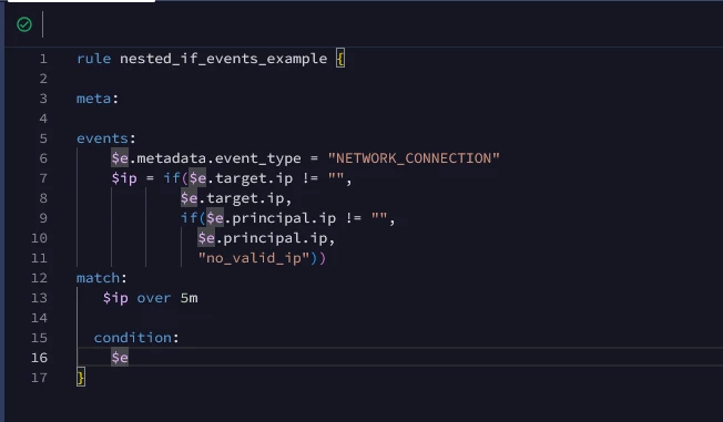 doc: ttps://docs.cloud.google.com/chronicle/docs/yara-l/nested-if