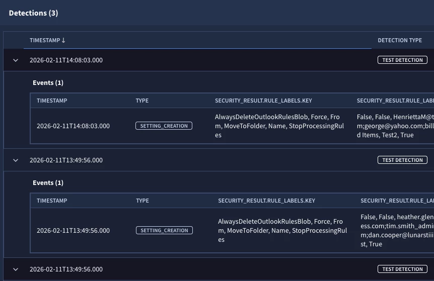 There are 3 fields which this fall under, but for simplicity sake, I’m looking at security_result.rule_labels["ForwardTo"] where it can have multiple recipients with the value of “ [removed by moderator] ; [removed by moderator] ; [removed by moderator] ”