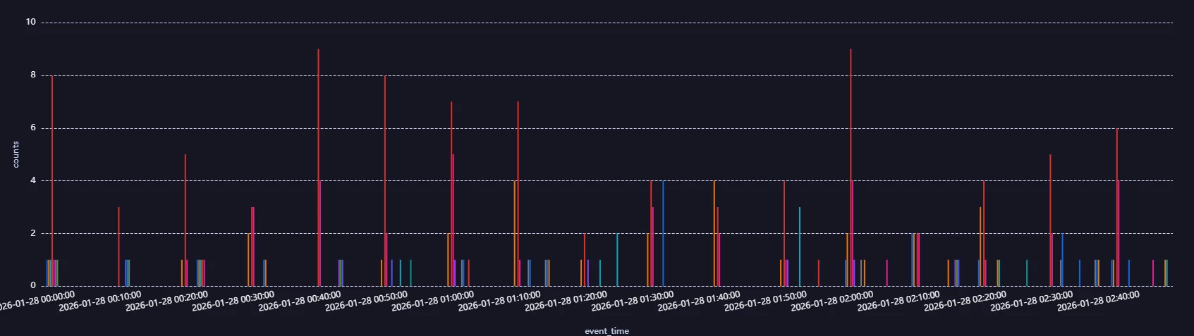 I created a dashboard widget where i am try to get the hit counts of URLs for a span of 10m window