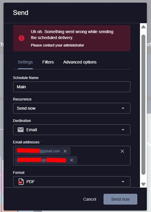 Can we send scheduled emails from SIEM Dashboards to an external domain?