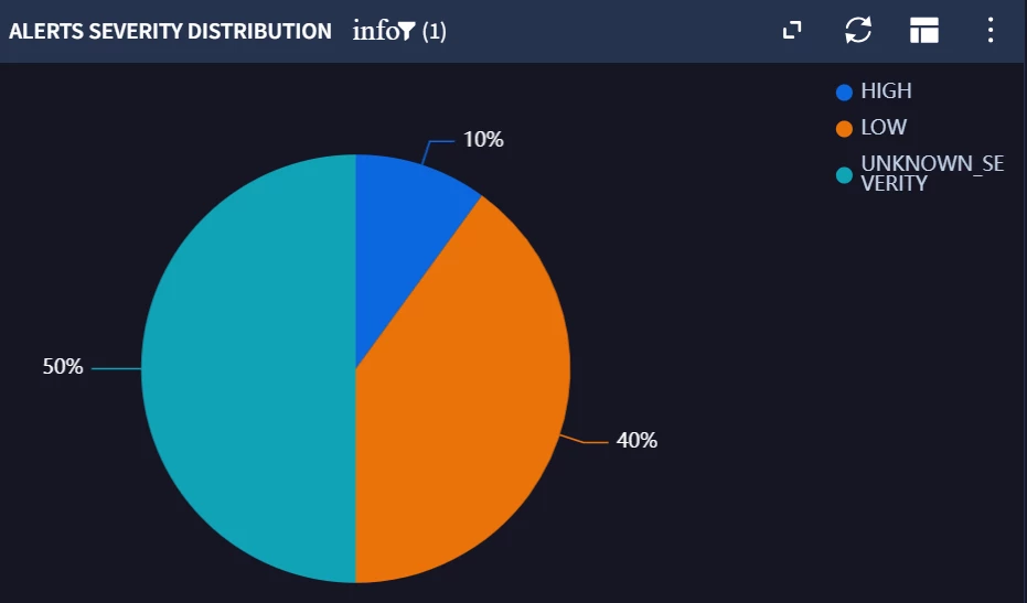 In Google SecOps (Dashboard pie chart), Iβm visualizing Alerts Severity Distribution. The pie chart renders correctly and the legend shows the categories (e.g., HIGH, LOW, UNKNOWN_SEVERITY), but the slice data labels display only the percentage (10%, 40%, 50%) and do not include the category name (expected format like β10% Highβ).