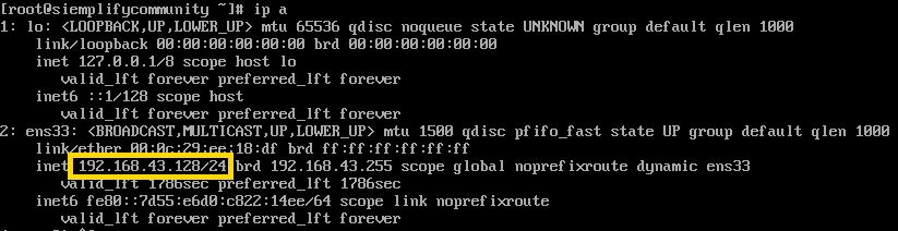 executing once again the command “ip a” will display us the ip address of our Siemplify portal: