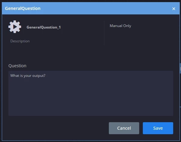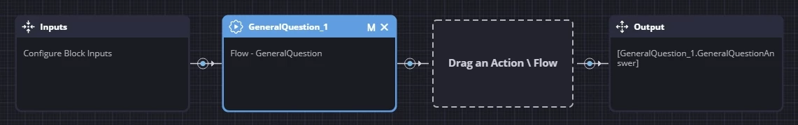 1. Test Block 1 with a General Question. The answer to the question is set as the output in Test Block 1.