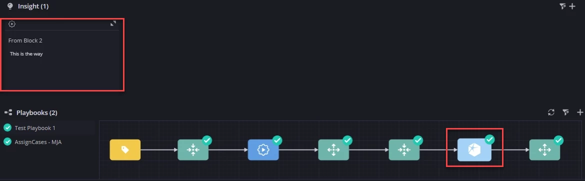 4. The result of answering "test" in Test Block 1 in a live alert playbook.