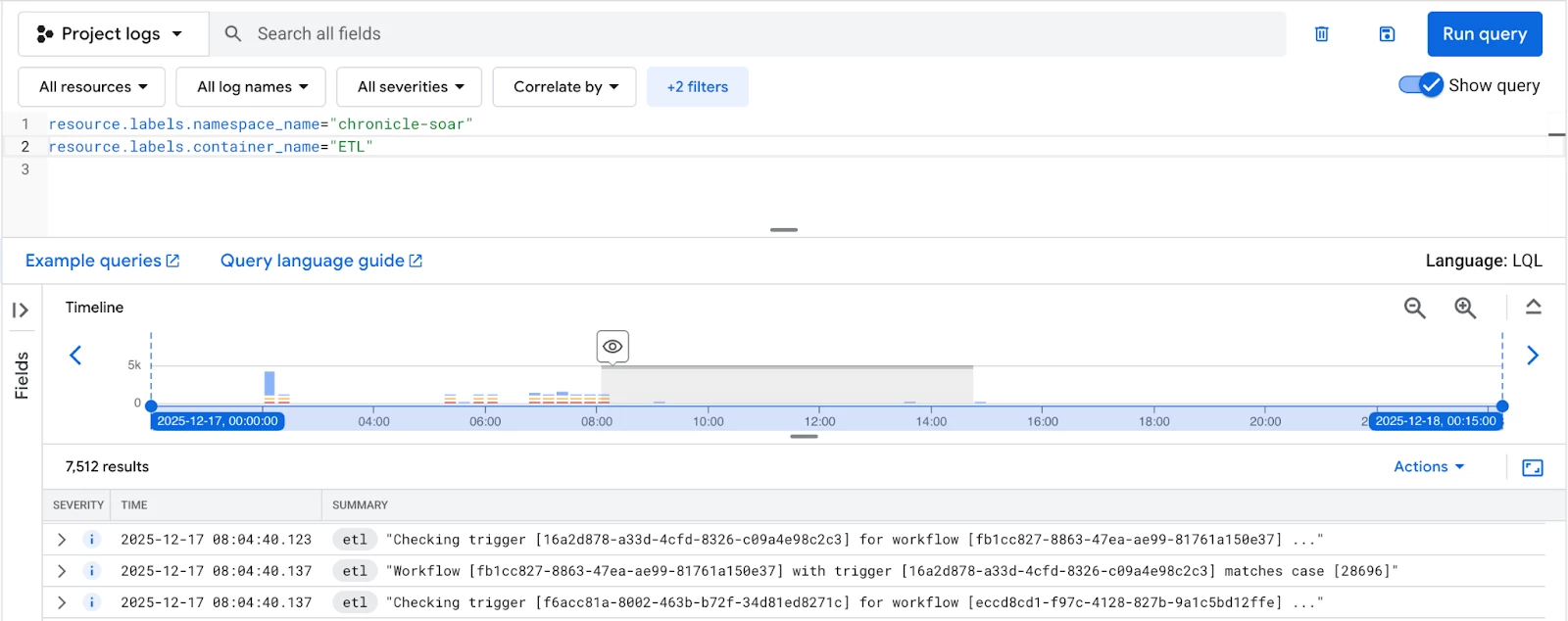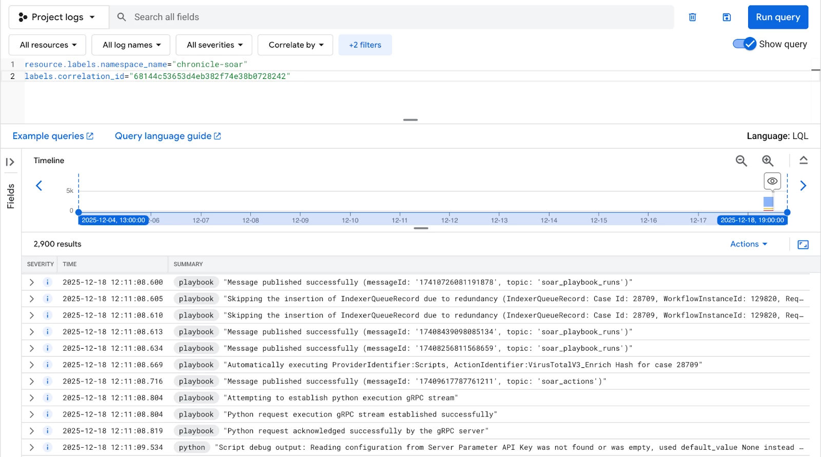 To start, let’s see how SOAR logs are organized and filtered in Logs Explorer.