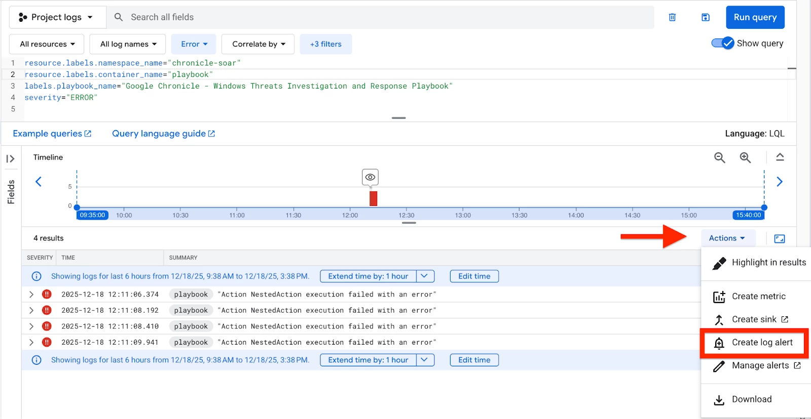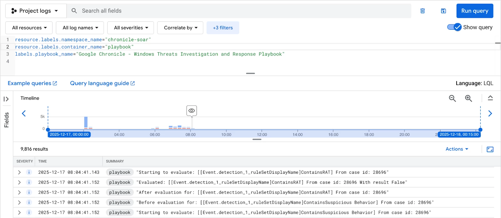 labels.playbook_name="Google Chronicle - Windows Threats Investigation and Response Playbook"