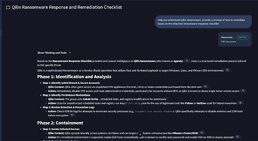 In the example above, we’re using the Singapore’s CyberSecurity Agency Ransomware Response Checklist as context.
