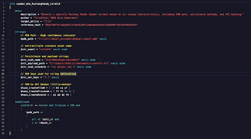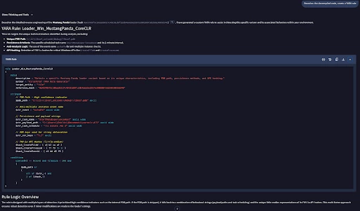 Now that we have analysed the binary’s content, we can now leverage its understanding of the binary and create a YARA rule. This now allows you to proactive hunt for samples that match this YARA rule. You can follow up with this prompt: