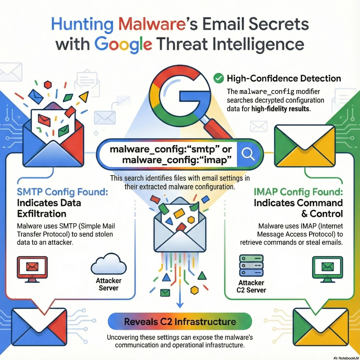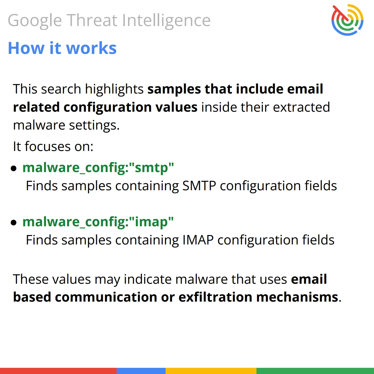 - Protocol-Based Threat: It targets malware that includes hardcoded or configurable fields for SMTP (for sending) or IMAP (for receiving/reading) email credentials or server details.