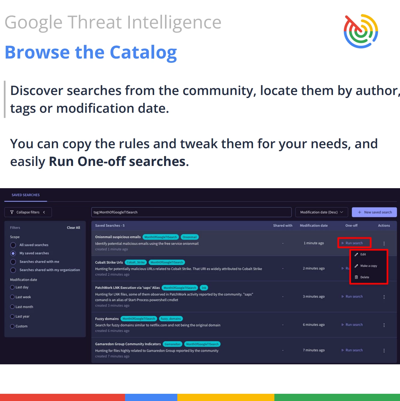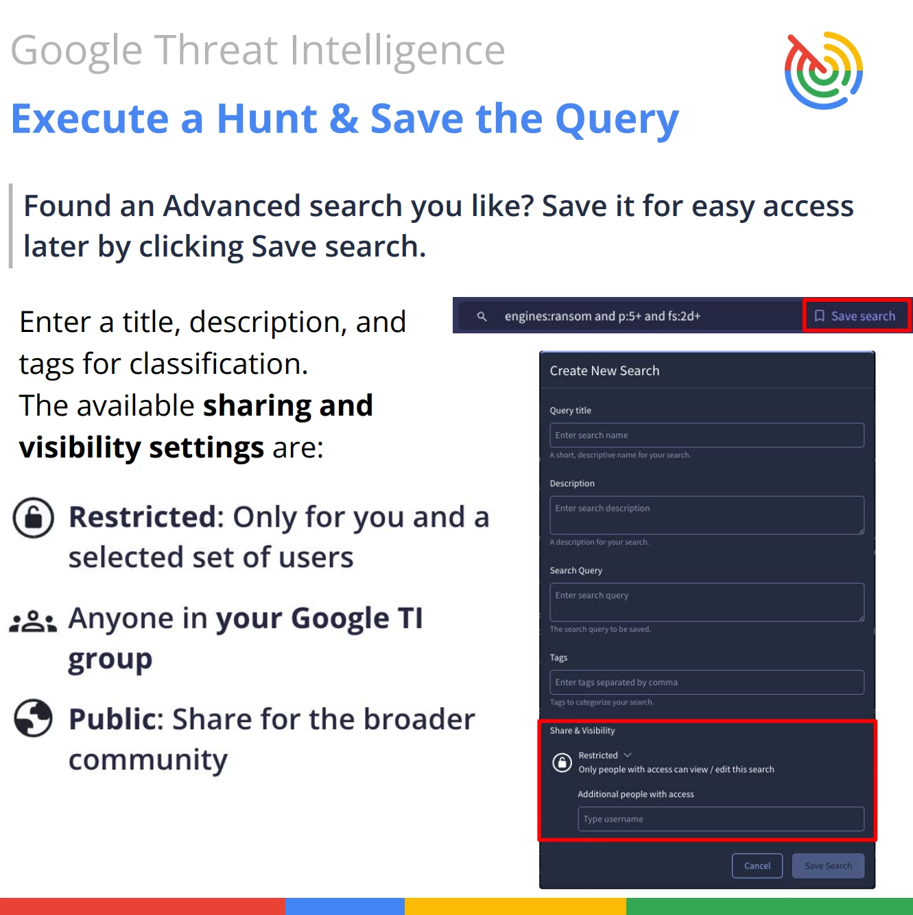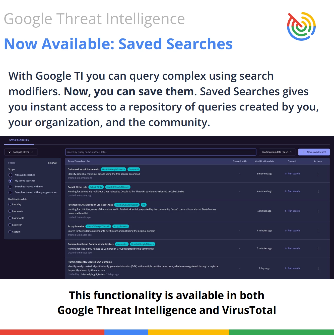 This was a commonly asked functionality from our community, and we are proud to launch this as a part of our Month of Searches promotion from November this year. Please review our several previous posts on this Forum for some interesting ideas on searches you can perform along with other hunts.