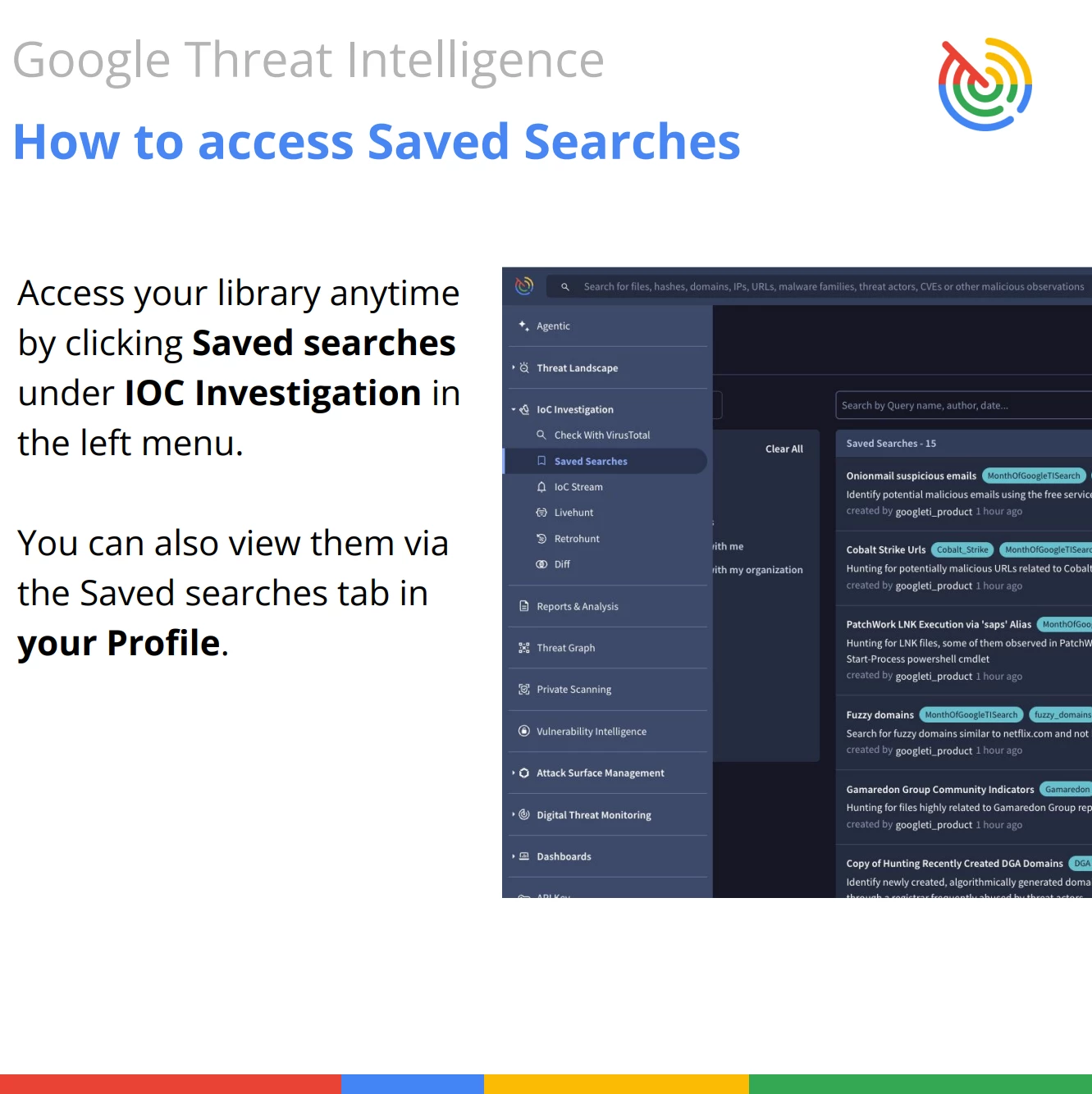 New Feature for Saved IOC Searches: We have enhanced the Intelligence Search workflow to eliminate repetitive manual entry. Threat hunters can now build complex queries once and save them for future use. This allows teams to efficiently monitor specific campaigns or infrastructure and re-run standard threat intelligence searches across our database of IoCs (files, domains, URLs, and IPs) without needing to reconstruct the modifiers every time.