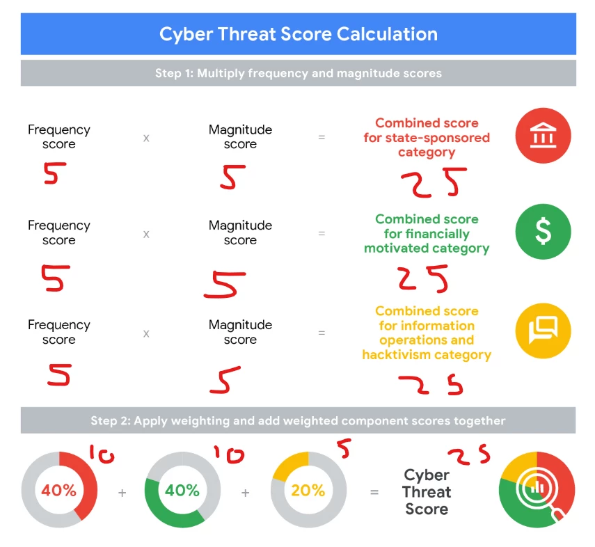 2.) I like the industry and country threat assessments within GTI but have a question re the methodology, as the explainer does not seem to make sense. In theory, the methodology should spit out a score between 0 and 10. But when experimenting with the methodology, I can see the score going way beyond that. For example, see below when assuming a maximum possible frequency and magnitude score across threat categories. Am I being silly here? What am I missing?