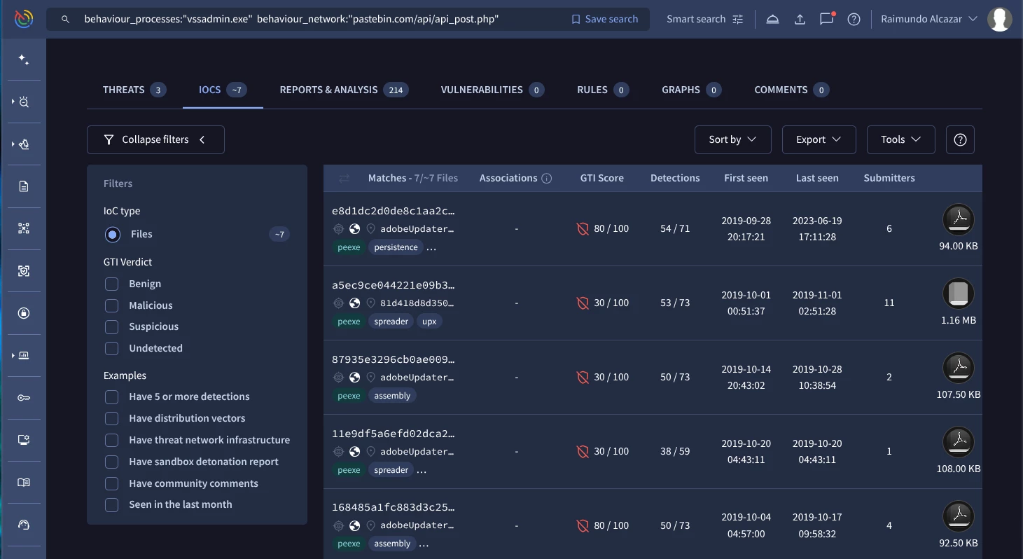 Let’s now focus on how we can use Threat hunting in Google TI using MITRE ATT&CK Enterprise. You can leverage some Advanced Search Modifiers to find files exhibiting specific behavioral characteristics.