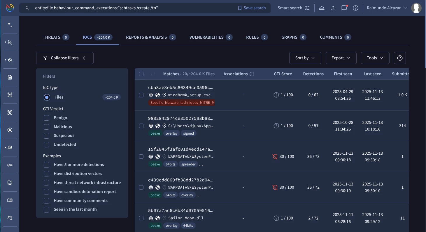 Our goal will be to proactively find malware samples that try to maintain Persistence on a system by creating a new scheduled task. This is a common TTP for sophisticated actors like APT29 (Cozy Bear) and FIN7.