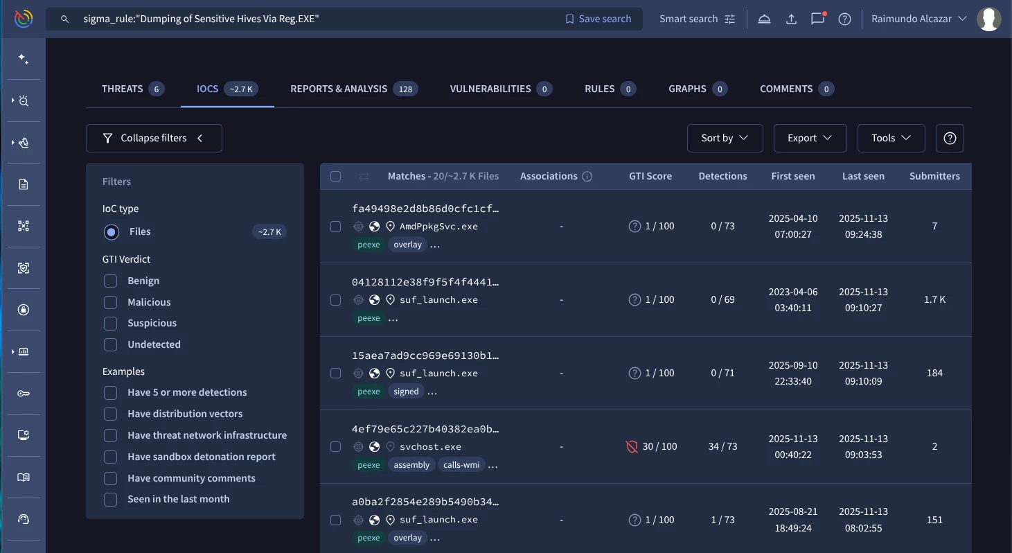 Our mission here is to find malware samples that use the unauthorized export (dumping) of critical Windows Registry Hives (SAM, SYSTEM, SECURITY) which contain local credentials and security secrets.