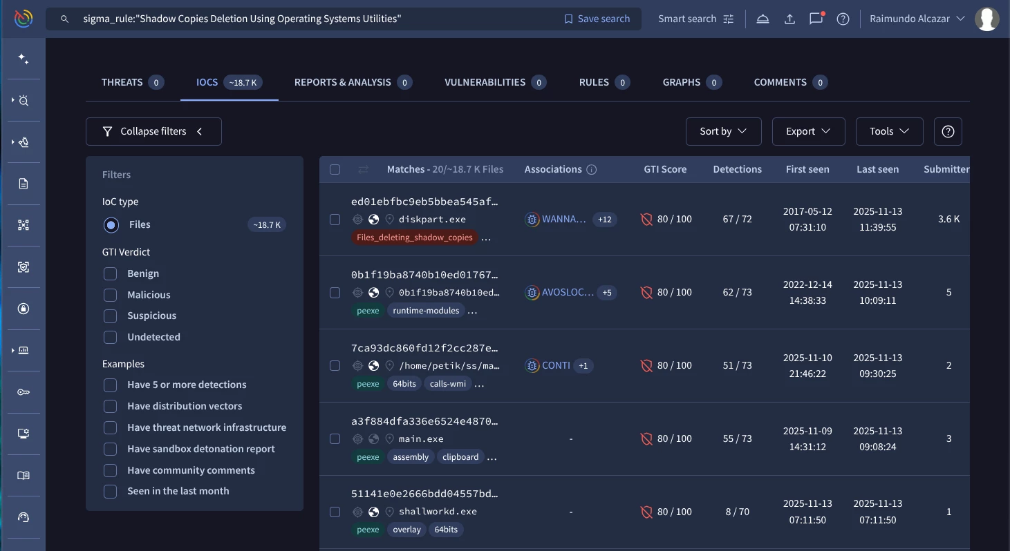 Our mission here will be to find malware samples that delete “Volume Shadow Copies”.