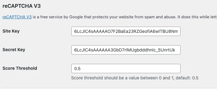 Please note that the secret key is sensitive (similar to an API key) and should not be shared. I would suggest editing your post to remove this, and to be safe I would also just create a new reCAPTCHA key just in case.